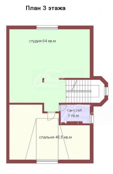3-ий этаж: студия 63.8 кв.м, с/у 6 кв.м, спальня 45.4 кв.м