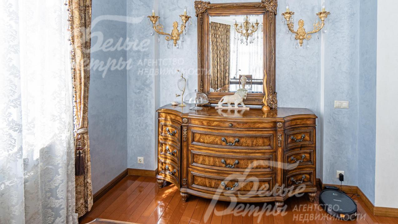 В мастер-спальне своя гардеробная и роскошный спальный гарнитур