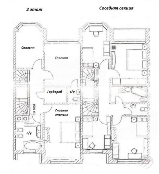 2-ой этаж: холл, спальня с ванной комнатой, спальня, спальня, гардеробная, общая ванная комната