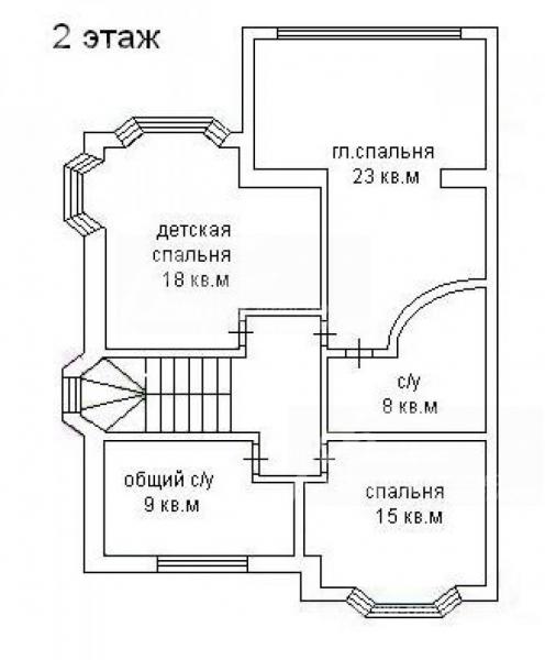 2-ой этаж: спальня хозяев 23 кв.м с панорамным остеклением и с/узлом 8 кв.м с круглой ванной, спальня 15 кв.м, спальня 18 кв.м, ванная комната 9 кв.м