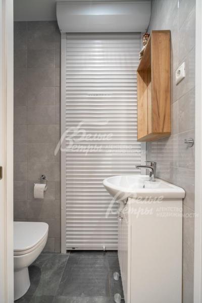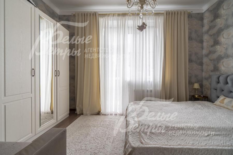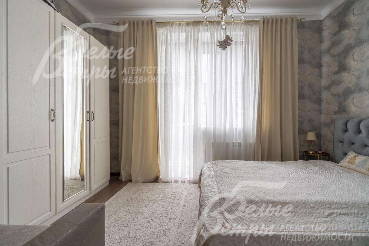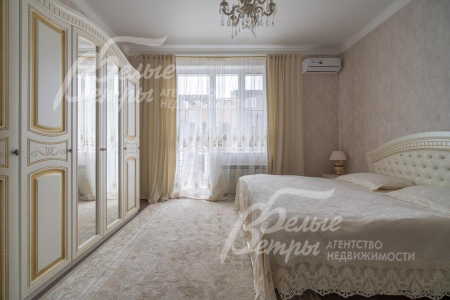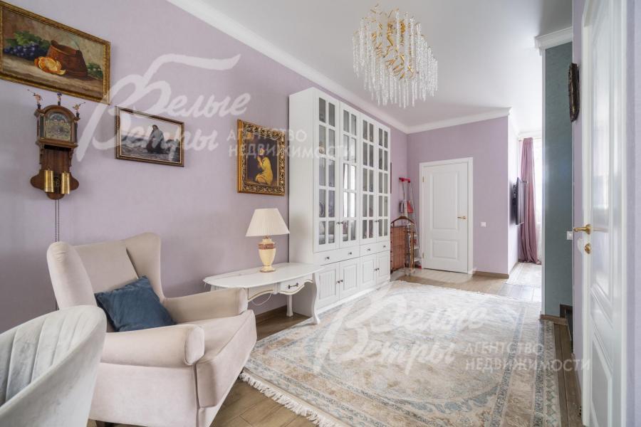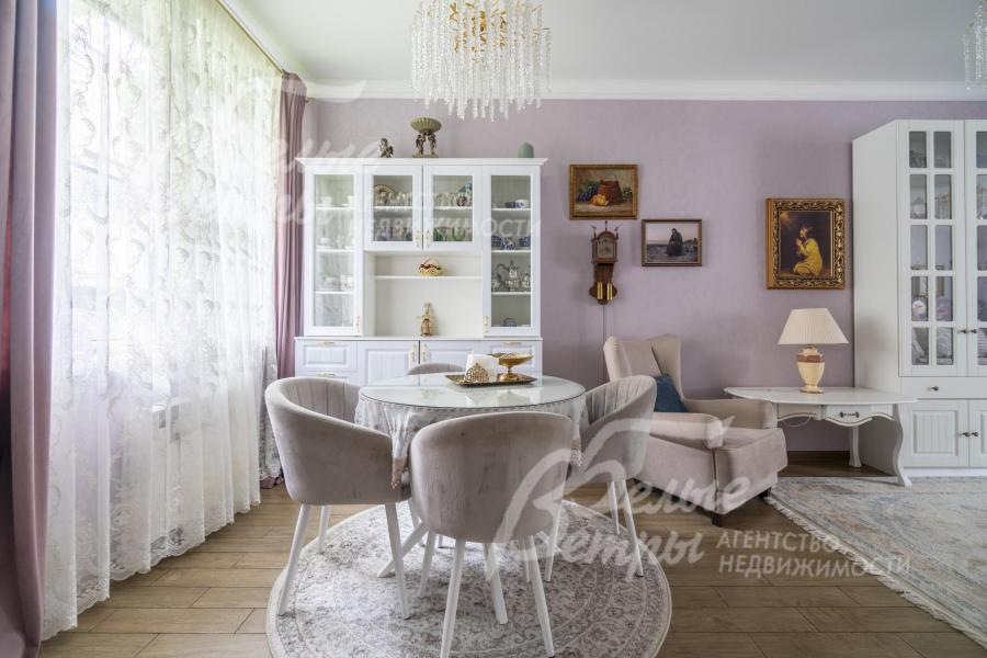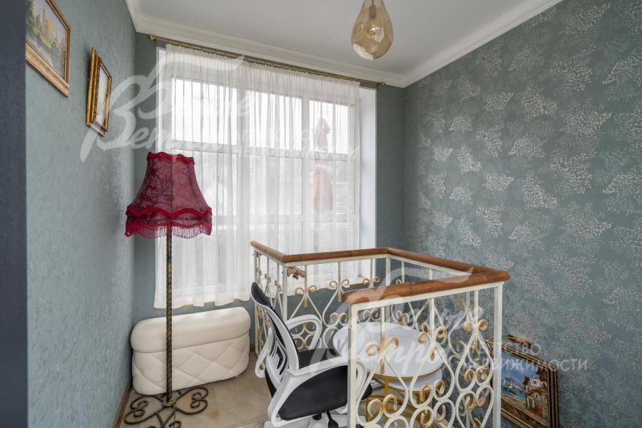 Описание внутренней отделки: классический стиль в тёплых постельных тонах: на стенах обои, в санузлах - плитка Kerama Marazzi. Пол на 1ом этаже отделан керамогранитом. Потолки натяжные. Лестница на металлокаркасе, шириной 80-84 см, обшита лиственницей, поручень из окрашенной лиственницы, забежные ступени. Двери - крашенный МДФ (Ульяновская фабрика) с магнитными замками. Подоконники - ПВХ глянцевые. В санузлах установлены смесители Grohe. На 3-ем уровне выведено электричество, установлены розетки, пол выложен керамогранитом.