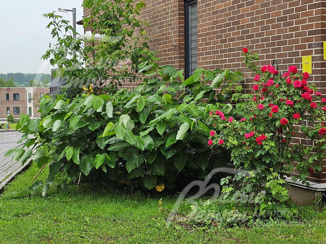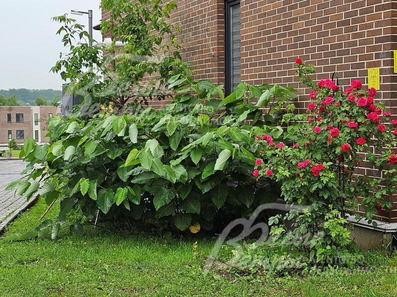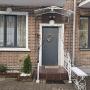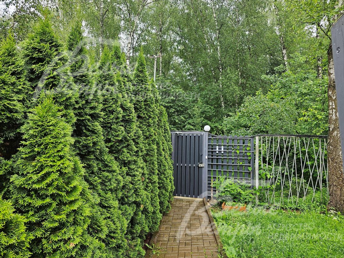 Благоустройство участка: перед входом разбита цветочная клумба, высажено 3 туи, стелящийся можжевельник, 2 куста лаванды, куст гортензии, 3 куста роз, балконные горшочки летом с цветами, установлена лавочка в стиле крыльца, с ковкой, козырёк над крыльцом также декорирован ковкой.