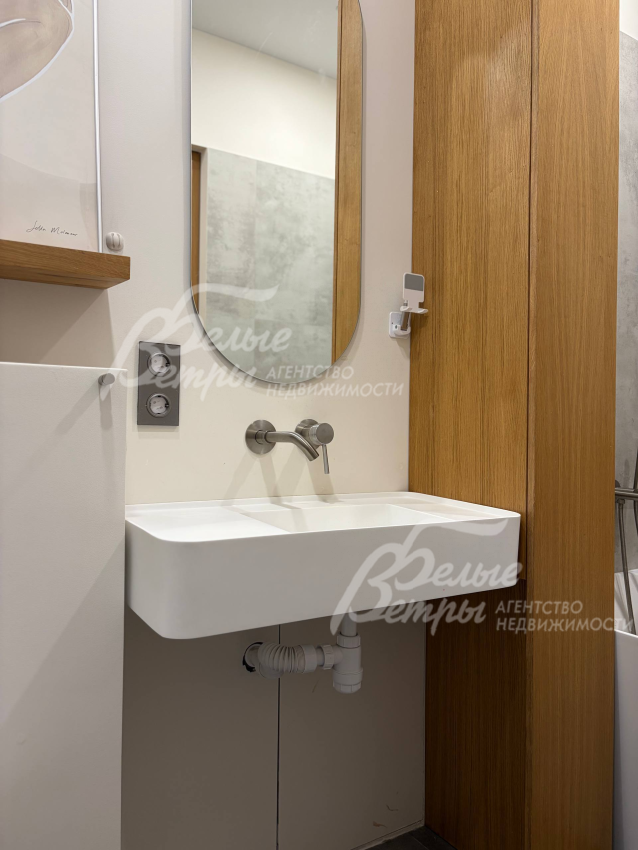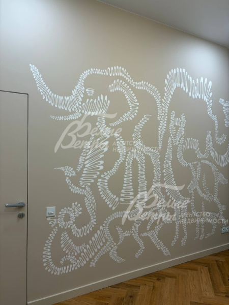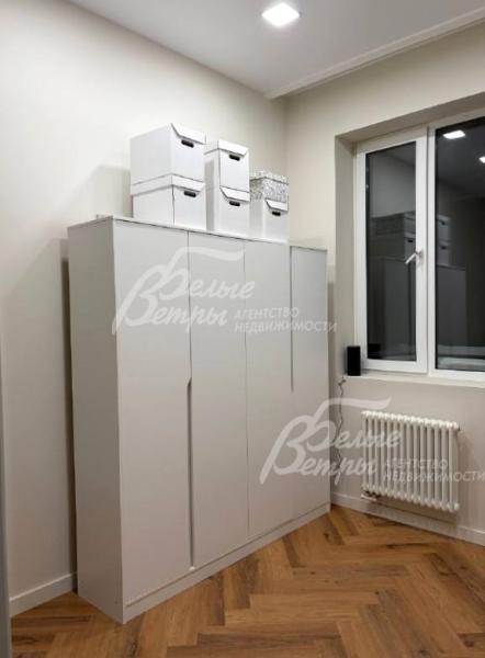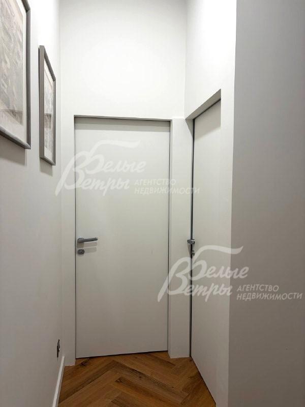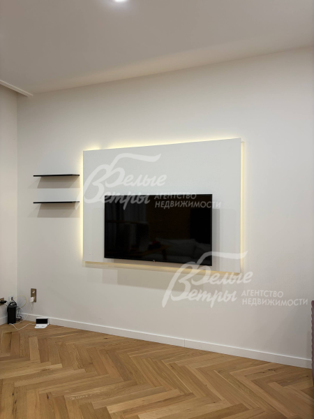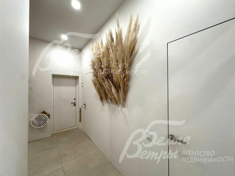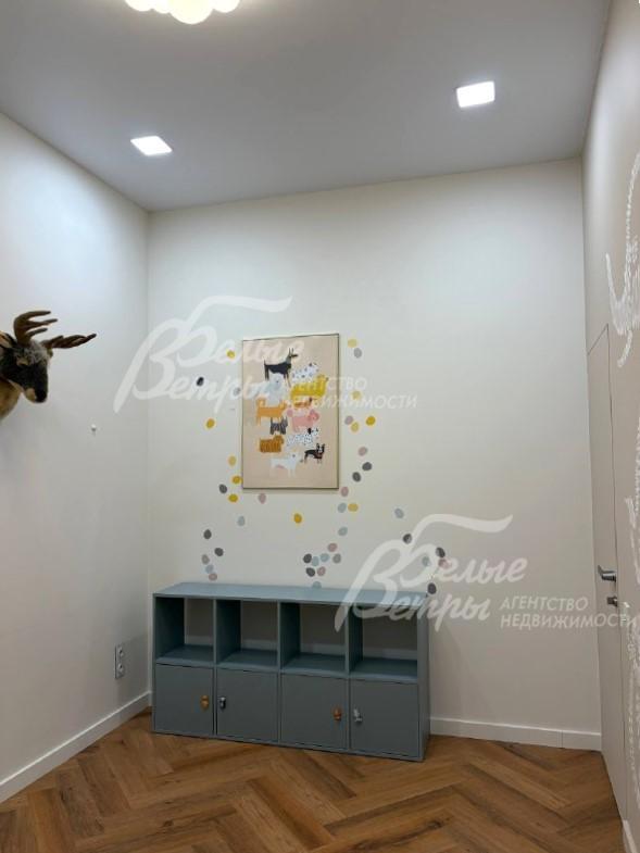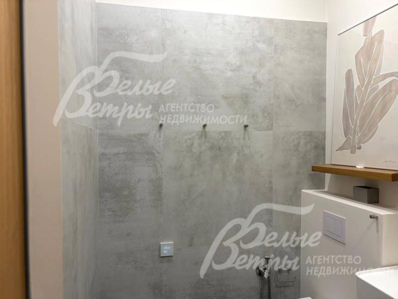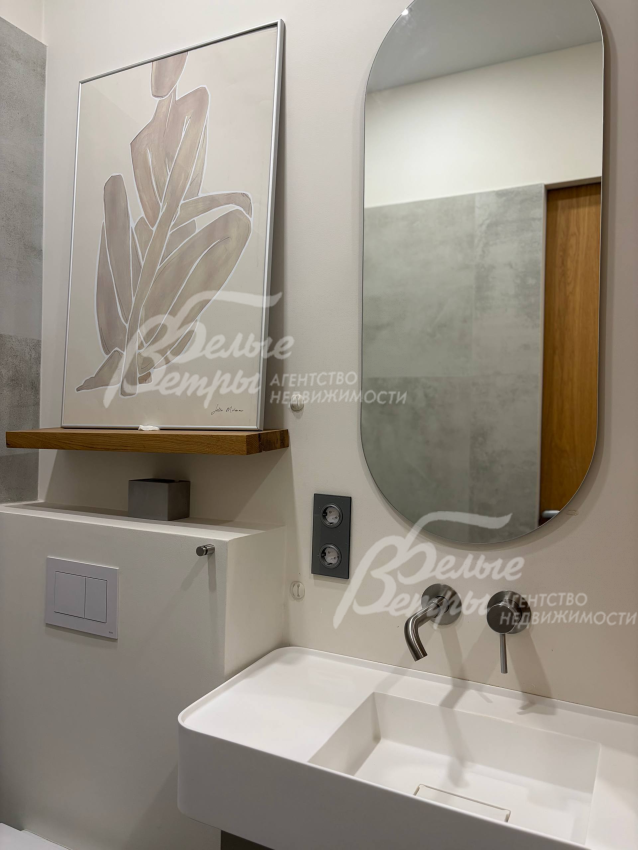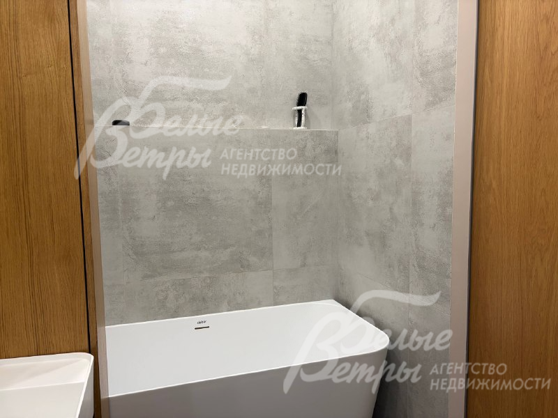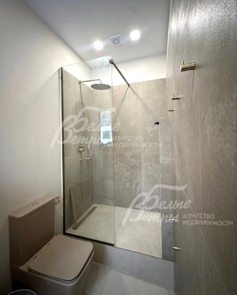 Описание внутренней отделки: в доме выполнена стильная отделка с использованием высококачественных современных материалов. На стенах – штукатурка, шпаклёвка и краска Flugger (Дания), в санузлах тёплые стены (вместо полотенцесушителей) облицованы лаппатированной плиткой Laparet размером 120×60 см. На первом этаже пол выполнен из инженерной доски (дуб), на втором — из кварцвинилового ламината: в прихожей и санузлах предусмотрены тёплые водяные полы. Потолки — натяжные, матовые. Выключатели и подрозетники – в едином стиле, в разной цветовой гамме по этажам — белые, золотистые и серебристые; на третьем уровне также проведено электричество и установлены розетки. Установлены радиаторы Home Heat в цветах каждого этажа. Входная дверь произведена компанией «Двери регионов», межкомнатные — скрытые двери «Терем» под покраску, в санузле на втором этаже установлена нестандартная высокая дверь, шпонированная под дуб. Подоконники выполнены из бетона и окрашены. Лестница на второй этаж – на металлокаркасе, обшита фанерой и покрыта матовым прозрачным лаком. На третьем уровне возведены междомовые перегородки. После ремонта сохранены остатки материалов, а также вся документация по сметам и колерам красок