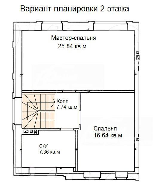2-ой этаж: свободная планировка - есть 4 варианта планировки. Мастер-спальня 26 кв.м, спальня 17 кв.м санузел 7 кв.м, холл 8 кв.м