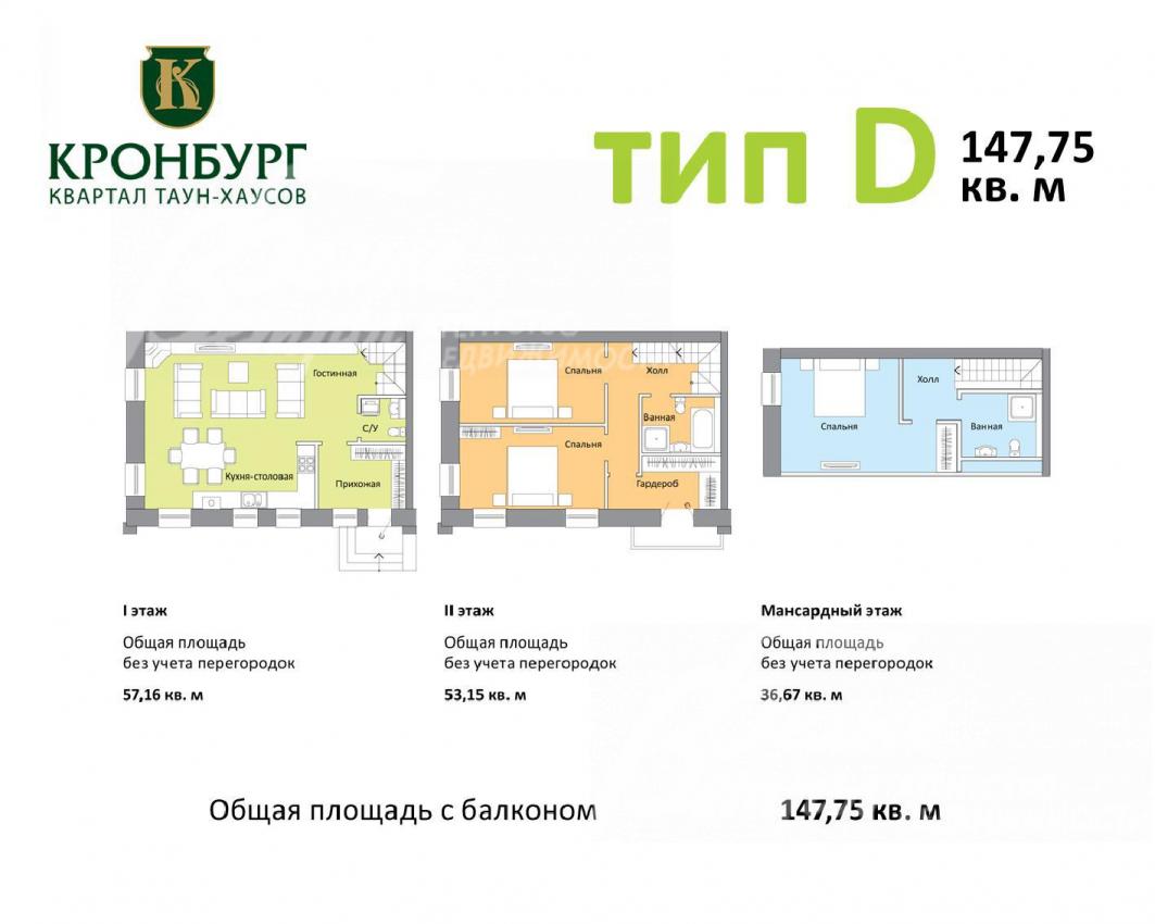 Спален: 3. С/узлов полных: 2. С/узлов неполных: 1. Комнат всего: 5.
