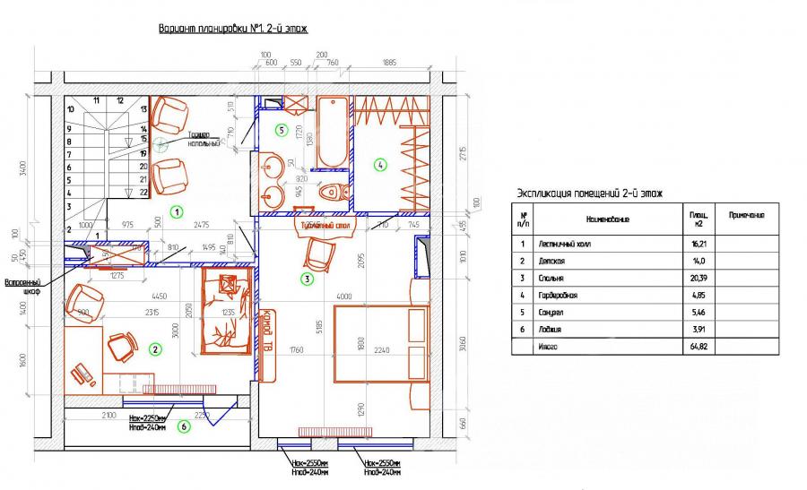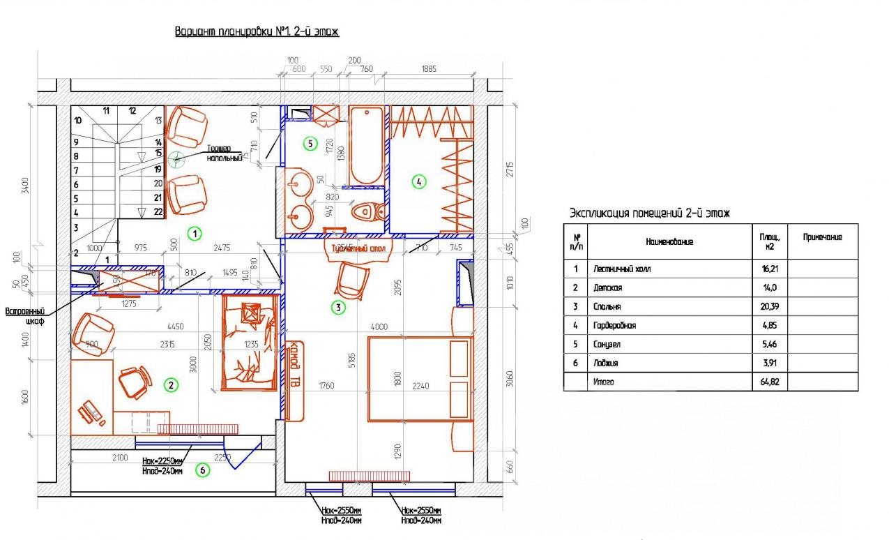 2-ой этаж: помещение свободной планировки 65 кв.м. Пример планировки: холл 16 кв.м, спальня с балконом 14 кв.м, спальня 20,4 кв.м, гардеробная 5 кв.м, с/у 5.5 кв.м