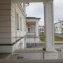 Облицовка стен: Цоколь здания, ступени и веранды отделаны натуральным гранитом Sunset Gold. Стены - фактурная штукатурка с высококачественной окраской латексной краской Benjamin Moore, декоративные элементы - колонны, капители. (Подсветка фасада в ночное время.)