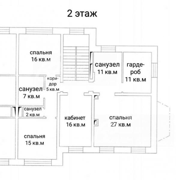 2-ой этаж: главная спальня 27 кв.м с санузлом 11 кв.м и гардеробной 11 кв.м., спальня 16 кв.м, санузел 7 кв.м, спальня 15 кв.м, коридор 5 кв.м, санузел 2 кв.м, кабинет 16 кв.м.