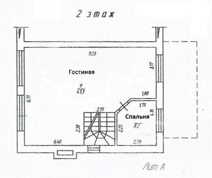 2-ой этаж: гостиная 47 кв.м, спальня/кабинет 8 кв.м