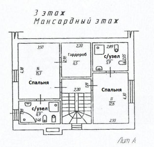 3-ий этаж: спальня 15 кв.м с с/узлом 7 кв.м, гардеробная 6.5 кв.м, спальня 12.6 кв.м с с/узлом 6 кв.м