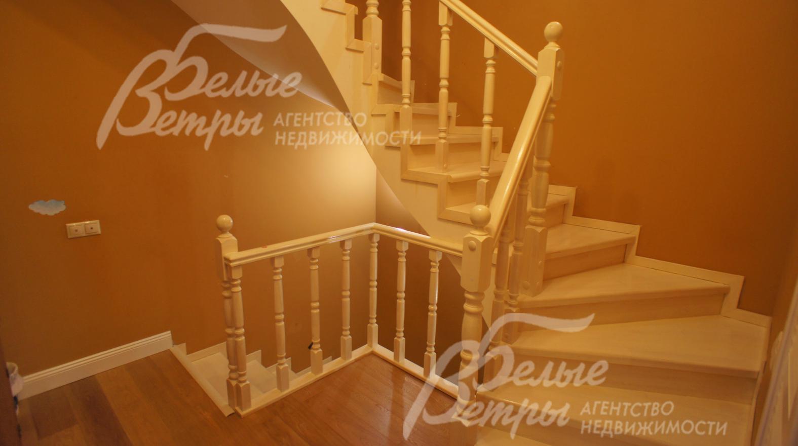 Лестничный марш: монолит отделан деревом (сосна)
