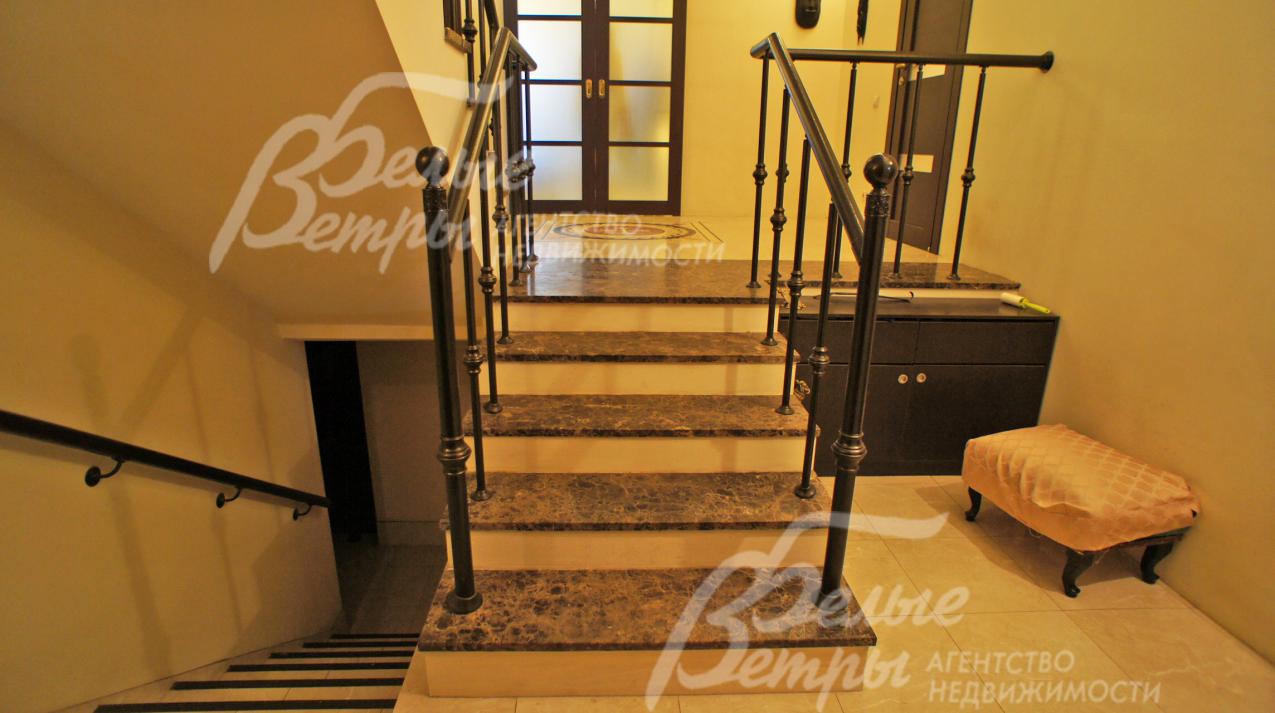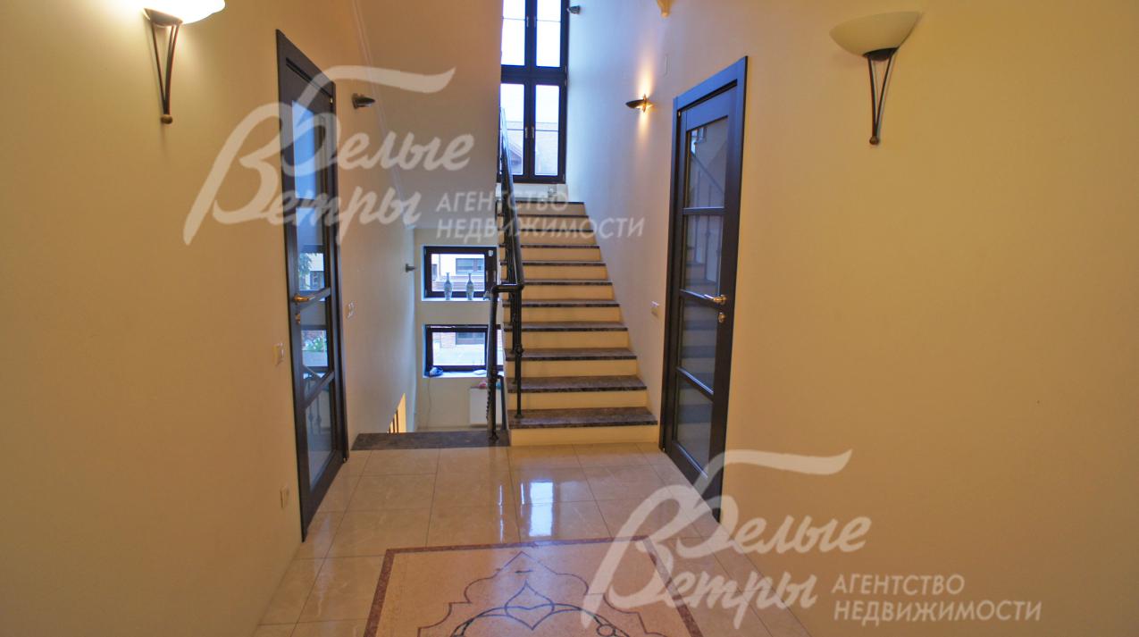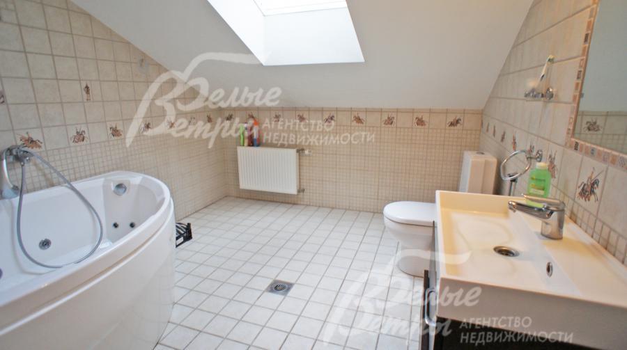 Описание внутренней отделки: Стены оклеены обоями, окрашены и отделаны декоративной штукатуркой. Стены в цоколе в спортзале обшиты панелями ПВХ и МДФ. Полы 1 этажа из итальянского керамогранита с водяным подогревом, в центре холла красивое наборное панно ручной работы сделано в Италии. Полы 2го этажа- итальянская мозаика, в санузле-плитка, в спальнях и кабинете, в мансарде-ламинат. Потолки гипсокартоновые, оштукатурены, окрашены, в цоколе-панели ПВХ. Лестничный марш железобетонный обложен итальянским мрамором " Emperador Dark". Двери деревянные со стеклянными вставками, входные двери с ламинацией. Все коммуникации разведены под ключ. Сантехника в доме брендов " Gustavsberg" и " Geberit".