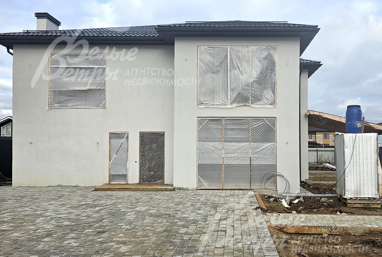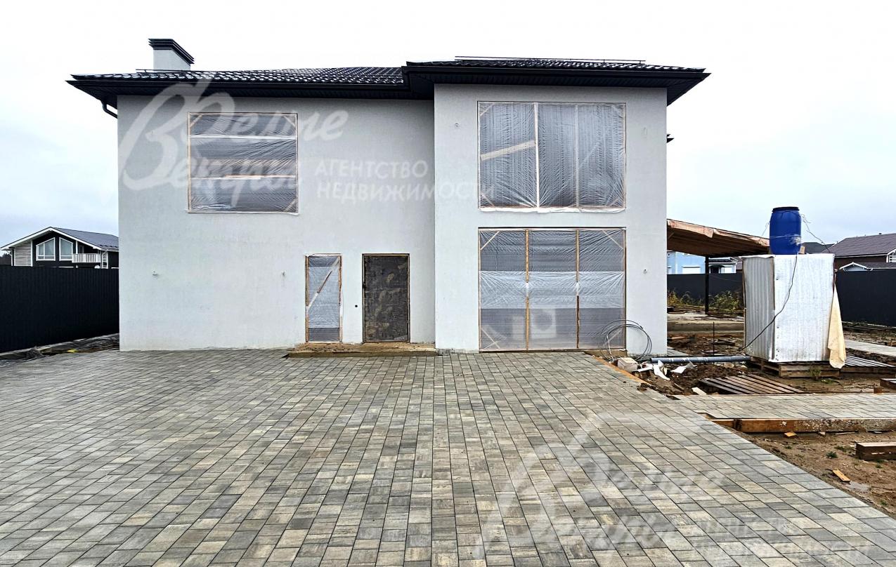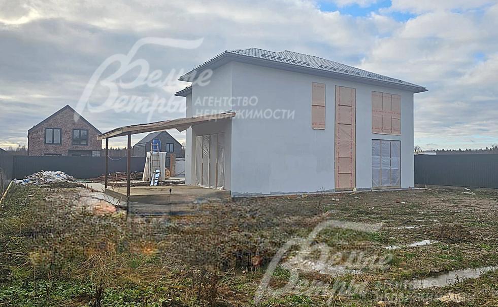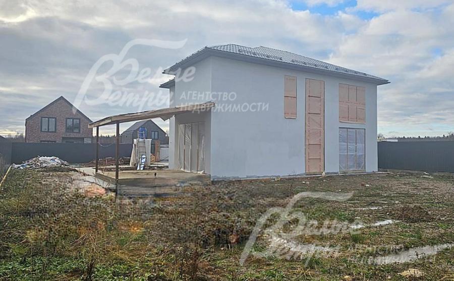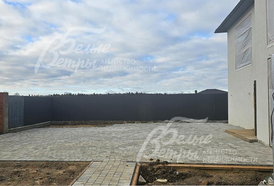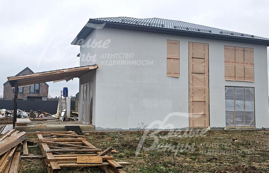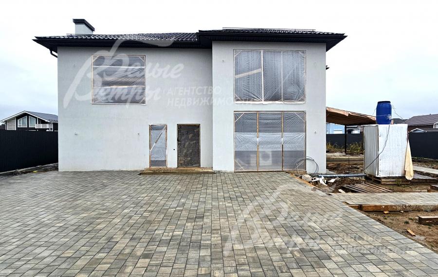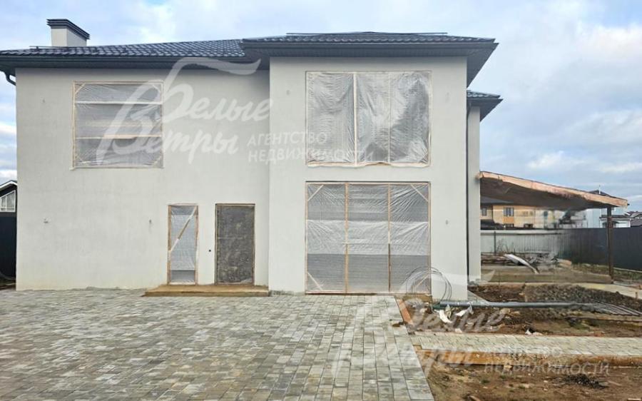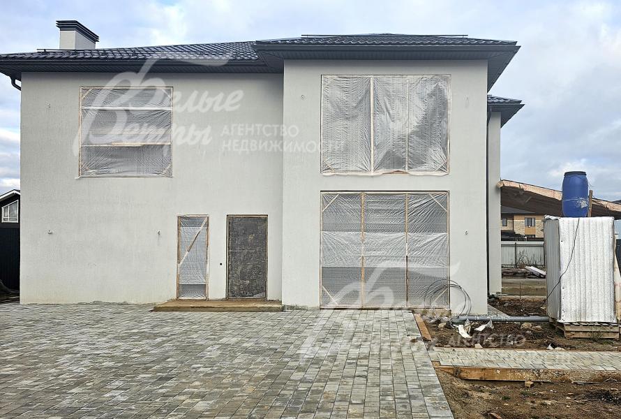На участке построен дом в современном классическом стиле под чистовую отделку (год постройки – 2025): готовая «коробка» с кровлей, фасадом, внутренними перегородками и заведенными коммуникациями. Общая площадь дома составляет 235 кв.м, включает два этажа и террасу. Несущие стены возведены из газобетонных блоков размером 40×20×60 мм с наружным утеплением толщиной 50 мм, внутренние перегородки изготовлены из прочных пескоцементных блоков. Фундамент – лента в сочетании с плитой, заглубленной на 1,5 метра, межэтажные перекрытия – монолитные. Фасад отделан декоративной штукатуркой «короед» производства VGT. Кровля смонтирована из металлочерепицы с утеплением перекрытия толщиной 200 мм, дополнена снегозадержателями и металлической водосточной системой. Внутри – монолитные бетонные полы и потолки, железобетонная лестница. Выполнено утепление чердачного перекрытия по полу. Все основные коммуникации разведены до точек потребления — проведены системы электроснабжения, водоснабжения и канализации. В планировке на 1-м этаже – холл 16 кв.м, лестничный проём 8,5 кв.м, кухня-столовая 22 кв.м, гостиная 20 кв.м, спальня (кабинет) 17 кв.м, санузел 5,5 кв.м, бойлерная 6 кв.м, терраса 22,5 кв.м; на 2-м этаже – холл, мастер-спальня 22 кв.м с санузлом и гардеробной 12,5 кв.м, спальня 23,5 кв.м, спальня 15 кв.м, санузел. Высота потолков (в черновом варианте) на 1-м этаже – 2,96 м, на 2-м этаже – 2,9 м. Все находящиеся в доме материалы остаются.