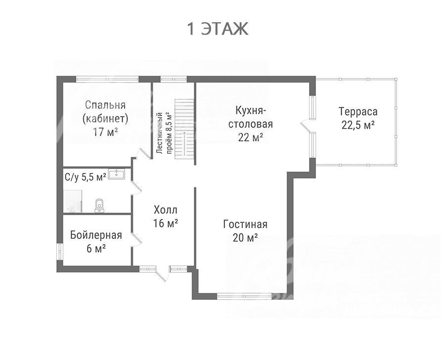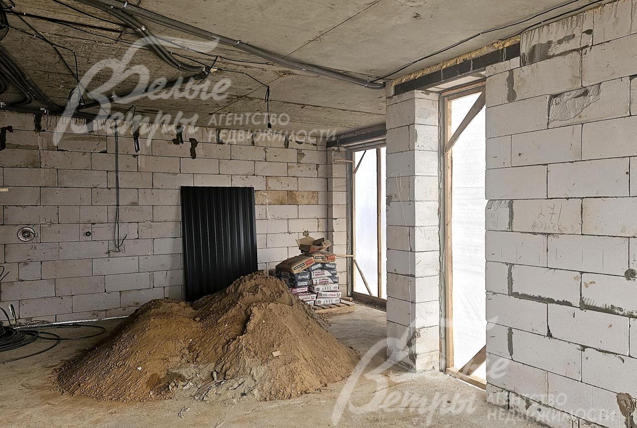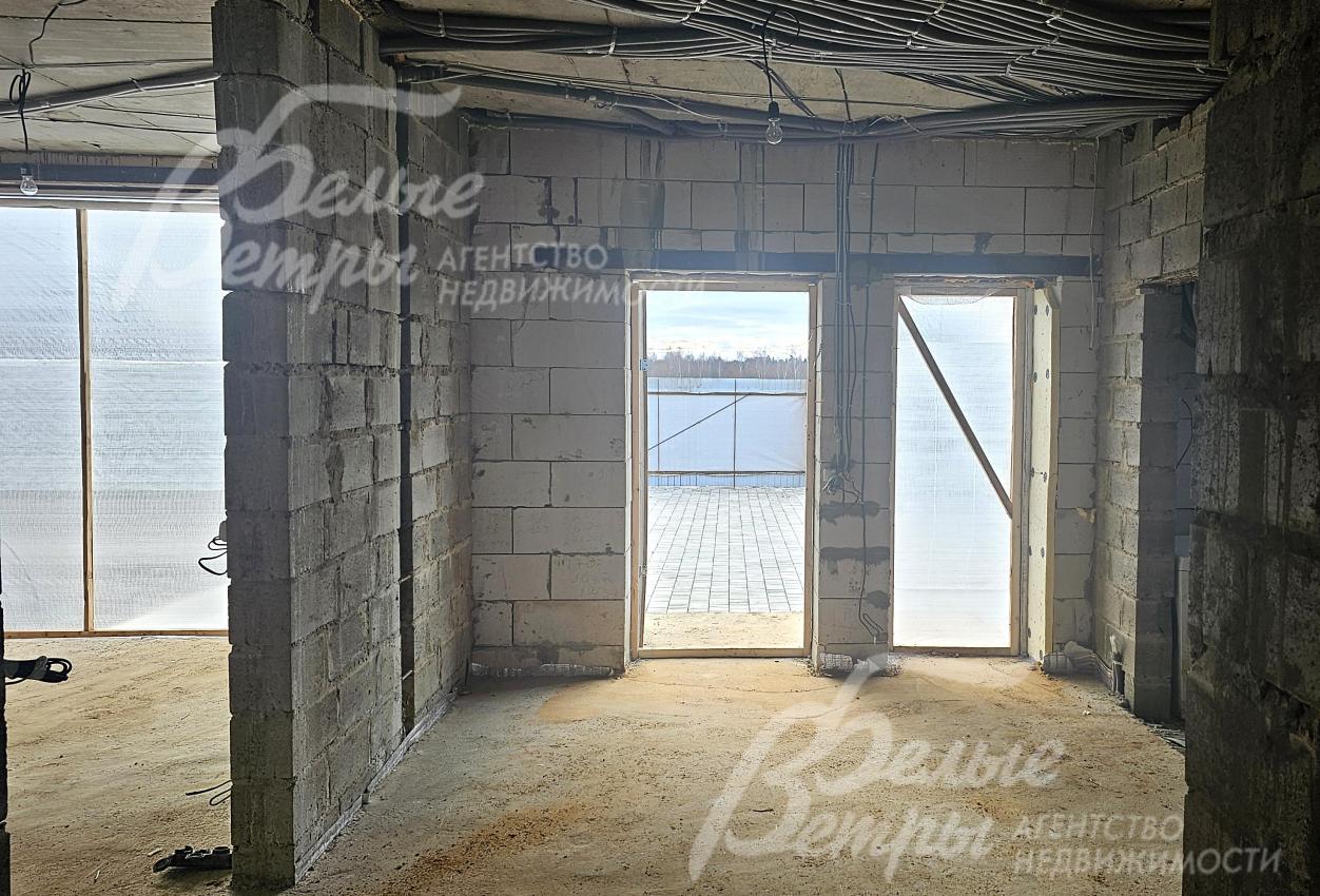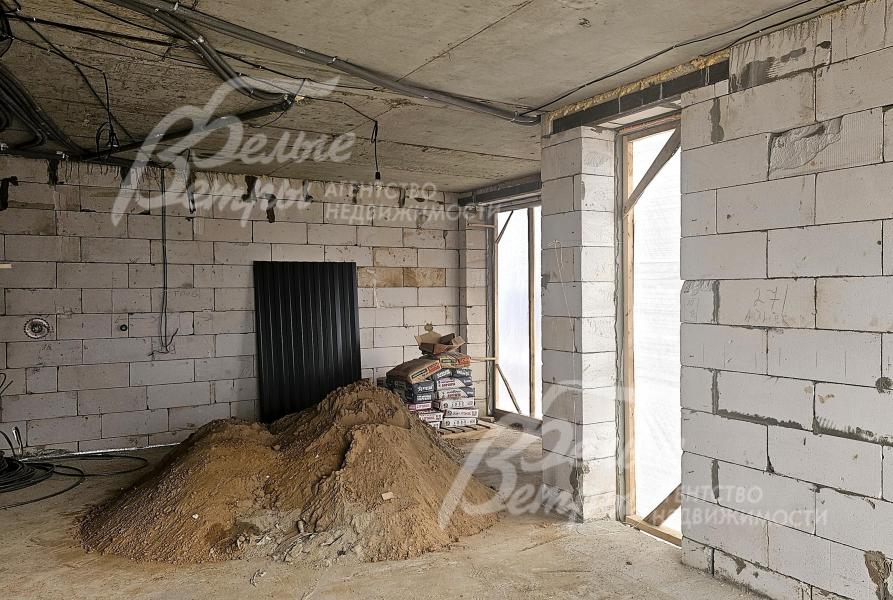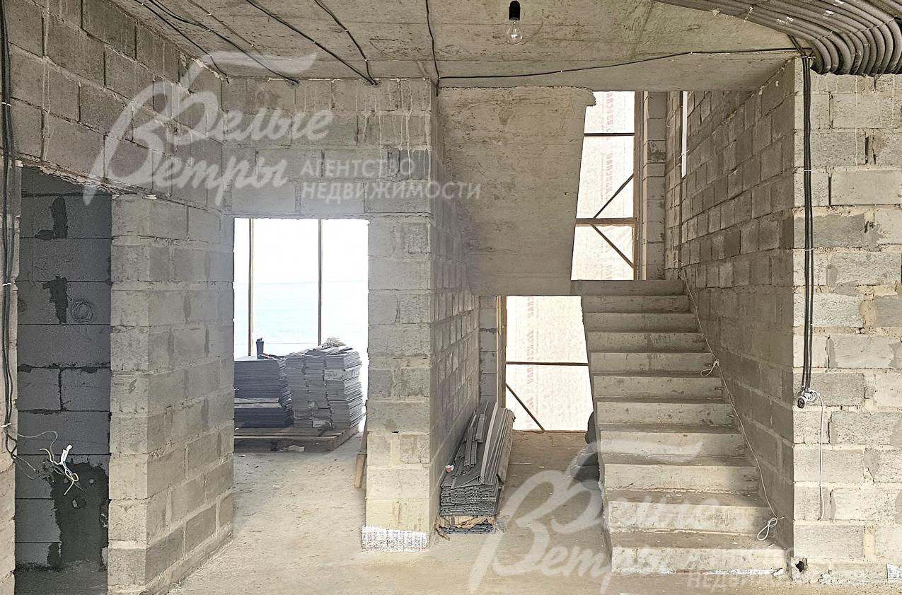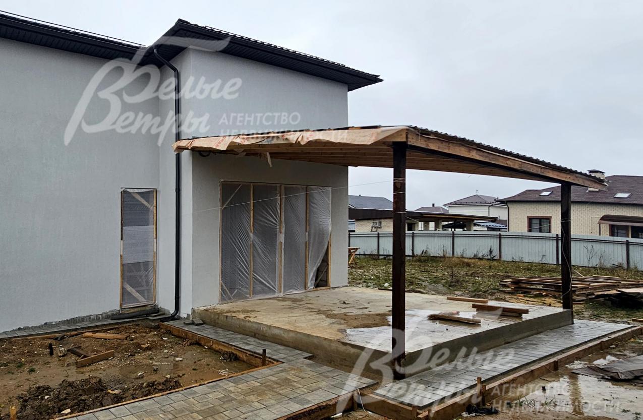 На участке построен дом в современном классическом стиле под чистовую отделку (год постройки – 2025): готовая «коробка» с кровлей, фасадом, внутренними перегородками и заведенными коммуникациями. Общая площадь дома составляет 235 кв.м, включает два этажа и террасу. Несущие стены возведены из газобетонных блоков размером 40×20×60 мм с наружным утеплением толщиной 50 мм, внутренние перегородки изготовлены из прочных пескоцементных блоков. Фундамент – лента в сочетании с плитой, заглубленной на 1,5 метра, межэтажные перекрытия – монолитные. Фасад отделан декоративной штукатуркой «короед» производства VGT. Кровля смонтирована из металлочерепицы с утеплением перекрытия толщиной 200 мм, дополнена снегозадержателями и металлической водосточной системой. Внутри – монолитные бетонные полы и потолки, железобетонная лестница. Выполнено утепление чердачного перекрытия по полу. Все основные коммуникации разведены до точек потребления — проведены системы электроснабжения, водоснабжения и канализации. В планировке на 1-м этаже – холл 16 кв.м, лестничный проём 8,5 кв.м, кухня-столовая 22 кв.м, гостиная 20 кв.м, спальня (кабинет) 17 кв.м, санузел 5,5 кв.м, бойлерная 6 кв.м, терраса 22,5 кв.м; на 2-м этаже – холл, мастер-спальня 22 кв.м с санузлом и гардеробной 12,5 кв.м, спальня 23,5 кв.м, спальня 15 кв.м, санузел. Высота потолков (в черновом варианте) на 1-м этаже – 2,96 м, на 2-м этаже – 2,9 м. Все находящиеся в доме материалы остаются.