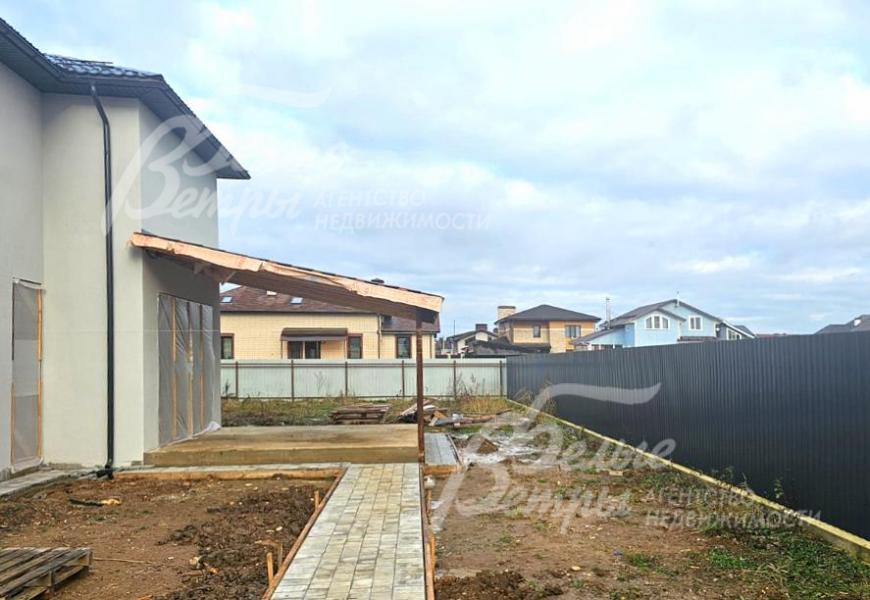 Ровный участок с двухэтажным домом под отделку с современной планировкой и просторными оконными проёмами. Территория участка облагорожена и подготовлена для ландшафтных работ и дальнейшего строительства: земля очищена от деревьев и растительности, уложена брусчатка на парковке перед домом и садовых дорожках. Участок выгодно расположен в середине коттеджного посёлка, в тихом месте, где отсутствует шум от дорог. Вокруг – живописная природа: в 200 м раскинулся лес, а в 700 м находятся река Пахра и два пруда. Коттеджный посёлок в Новой Москве – строго охраняемый, с центральными коммуникациями, окружён лесным массивом.