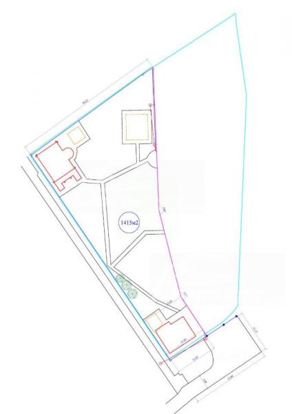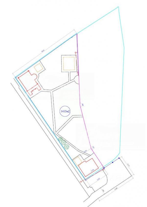 Участок находится в конце улицы, в тупике и огорожен капитальным кирпичным забором высотой 2,5 м, облицованным кирпичом с декоративными элементами.