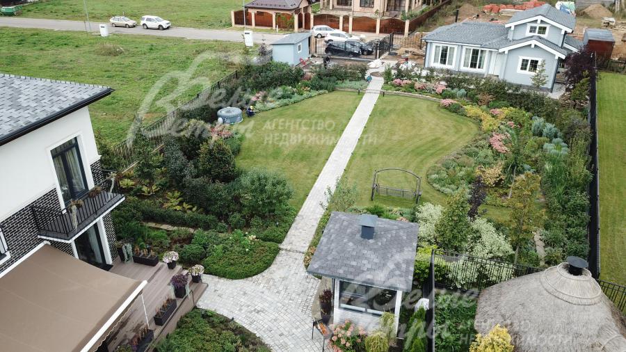 Благоустройство участка: ландшафтный дизайн; более 4 тыс.растений, подпорные стенки, живая изгородь из красных яблонь. Есть полный проект озеленения. Система автоматического полива, уличное освещение дорожек, все поключено к системе Умный Дом.